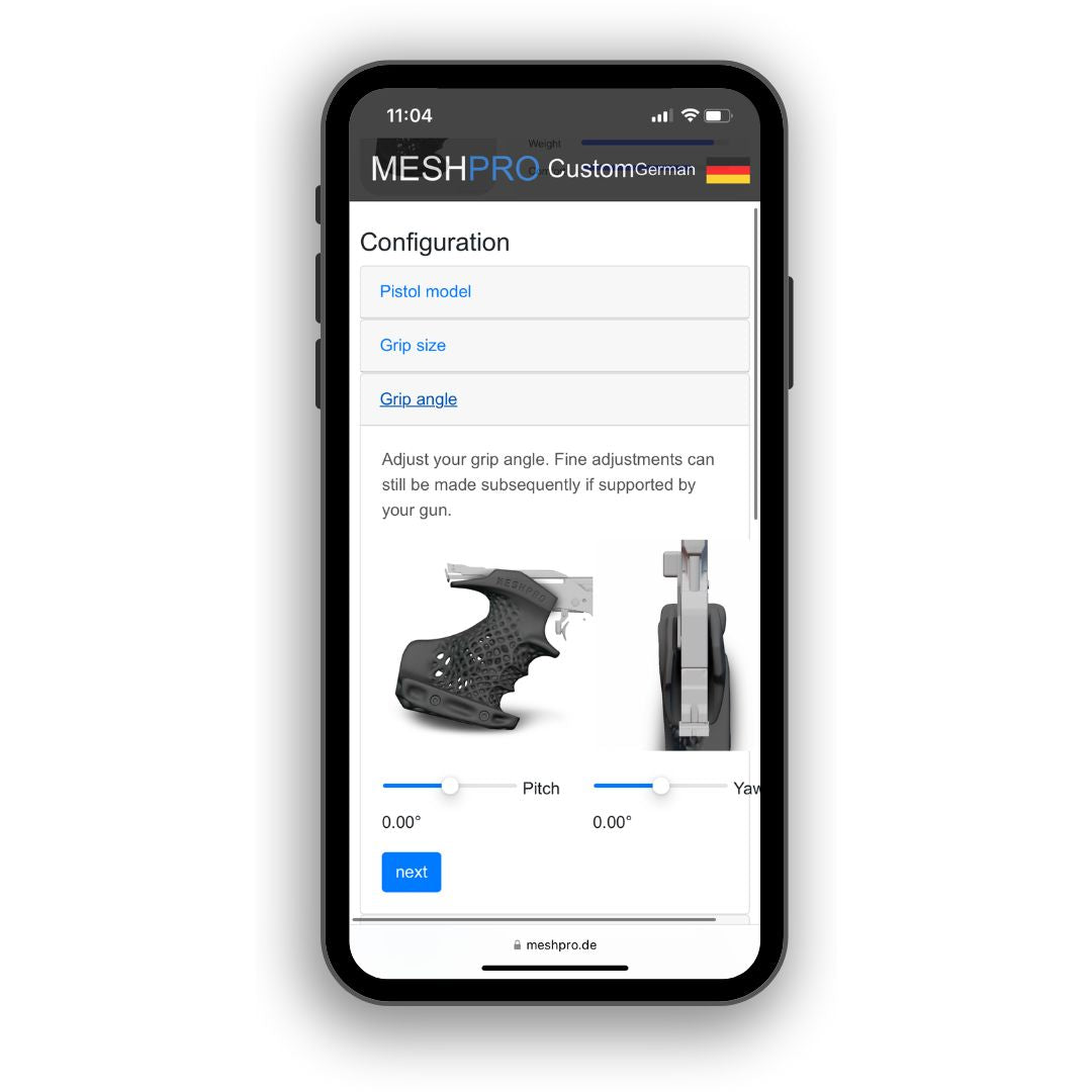 Yes, we have developed a grip configurator tool that allows you to create pistol grips with countless options. You can even scan your hand with your smartphone, enabling us to perfectly adjust the grip size to fit your hand. The configurator is available at www.meshpro.de/custom.
