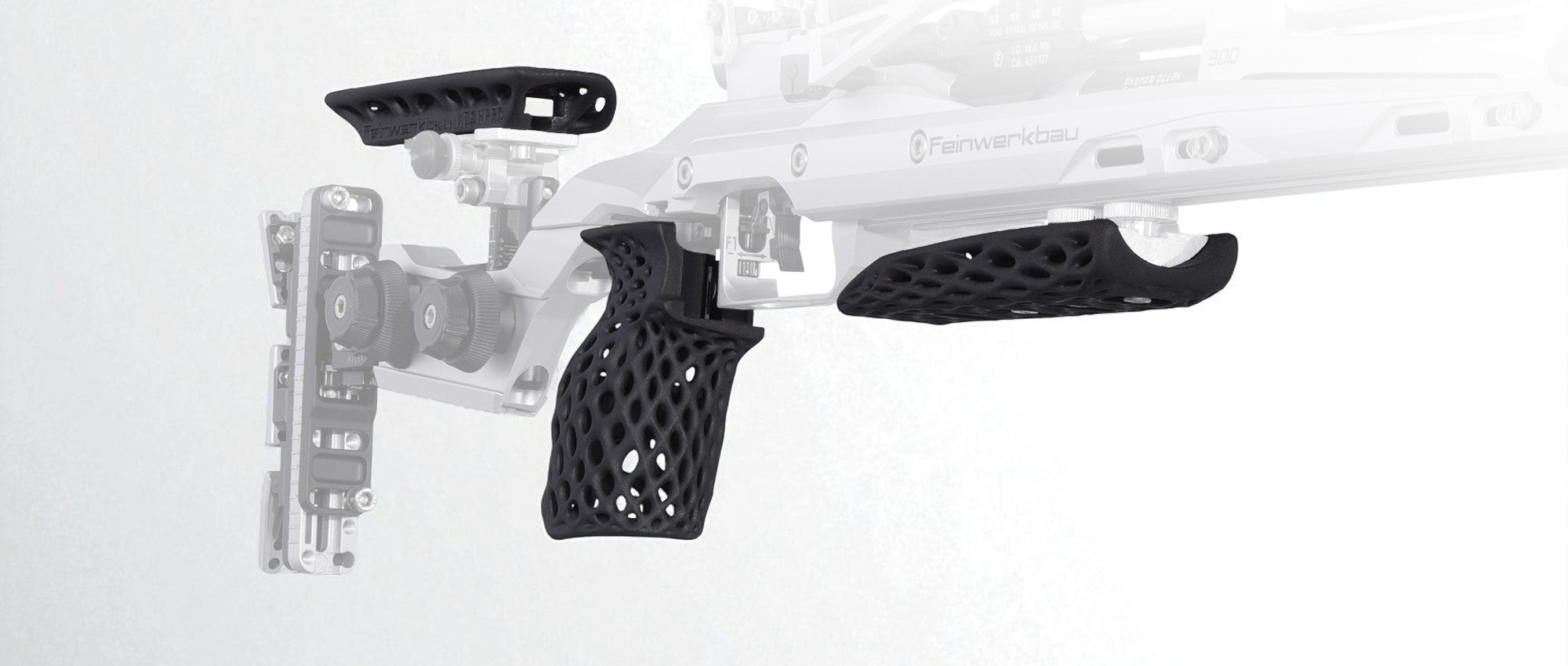 Entdecken Sie innovative Griffstücke und Zubehör wie Schaftbacken und Handauflagen für Gewehre verschiedener Hersteller!