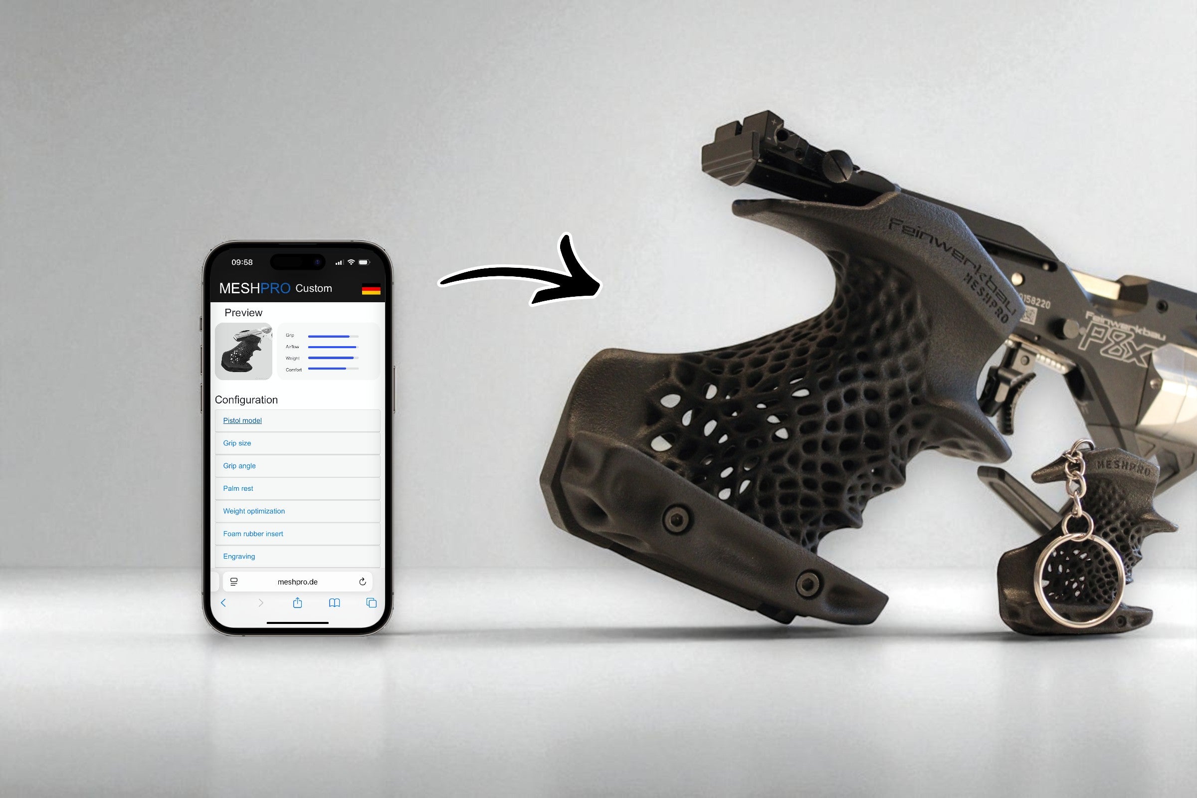 MESHPRO steht für Innovation. Mit unserem Griff-Konfigurator und dem speziell entwickelten Handscan kannst du deinen individuellen Pistolengriff so einfach wie nie zuvor erstellen.